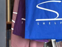 | 大判写真集も入るシェルフのオリジナル・トートバッグ。新色として「パープル」「マリンブルー」「メルロー」が加わりました! |