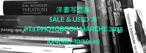 10/4-5開催のT3 PHOTOBOOK MARCHE 2025にて洋書写真集セールと古書写真集の販売を行います。皆さまのご来場をお待ちしております。4日(土)会場B|シティラボ東京(東京スクエアガーデン6F)/ 5日(日)会場A|東京スクエアガーデン1F 貫通通路 *両日出展会場が異なりますのでご注意ください |